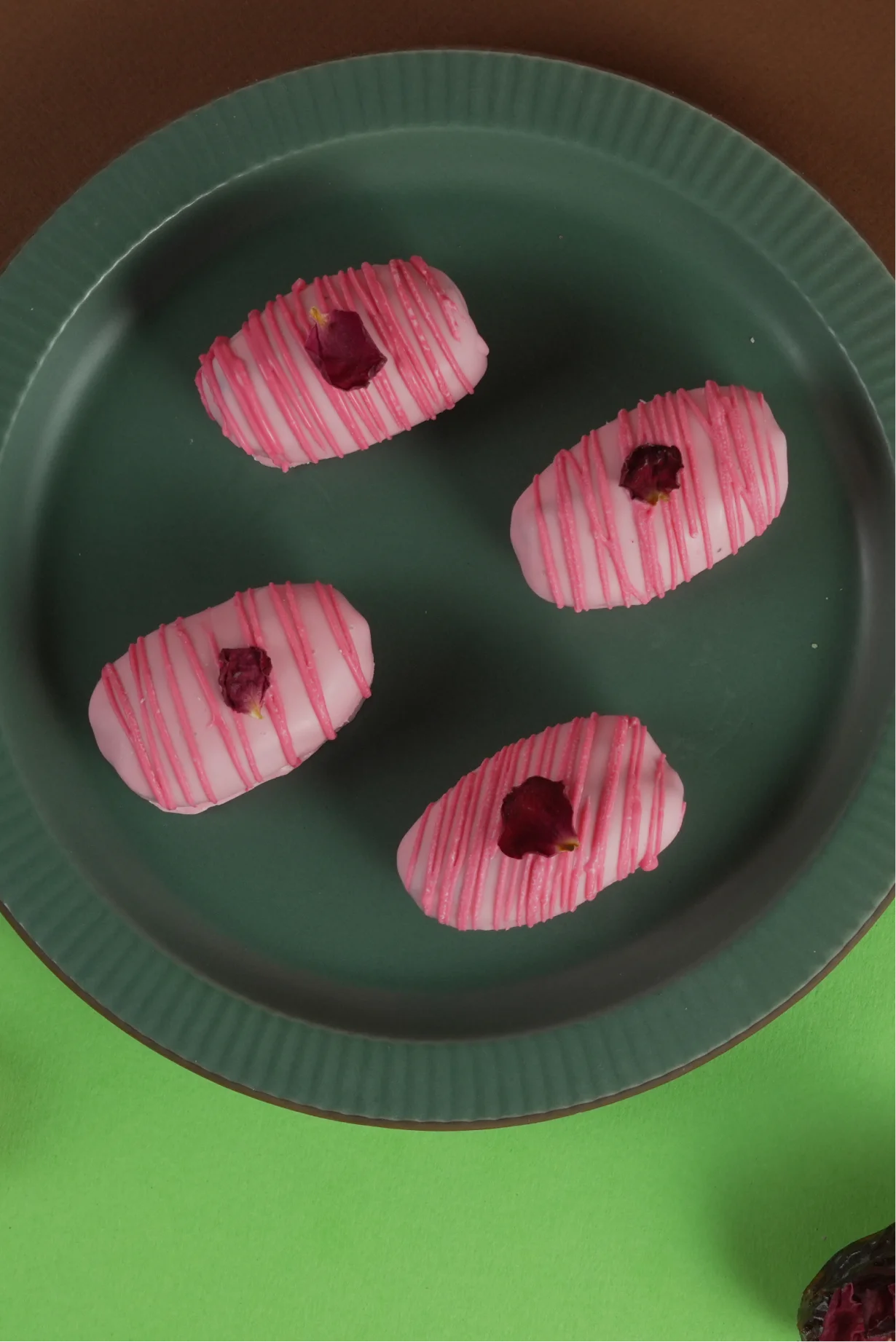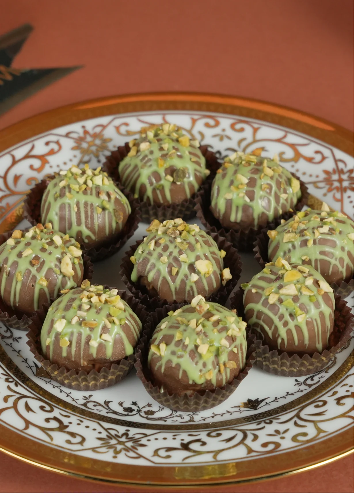 Made with ingredients reserved for the richest creations, pure cocoa butter, Madagascar vanilla, caramelized nuts, golden saffron, turkish rose and arabian dates, the kind reserved for truly premium chocolates.